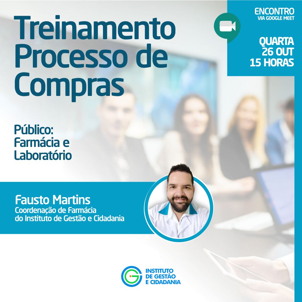 Sistema de Gestão da Qualidade Treinamentos Treinamento Processo de Compras Autor: Fausto MartinsData: 26/10/2022 Fausto Martins Farmacêutico do Instituto de Gestão e Cidadania Desenvolvido por: