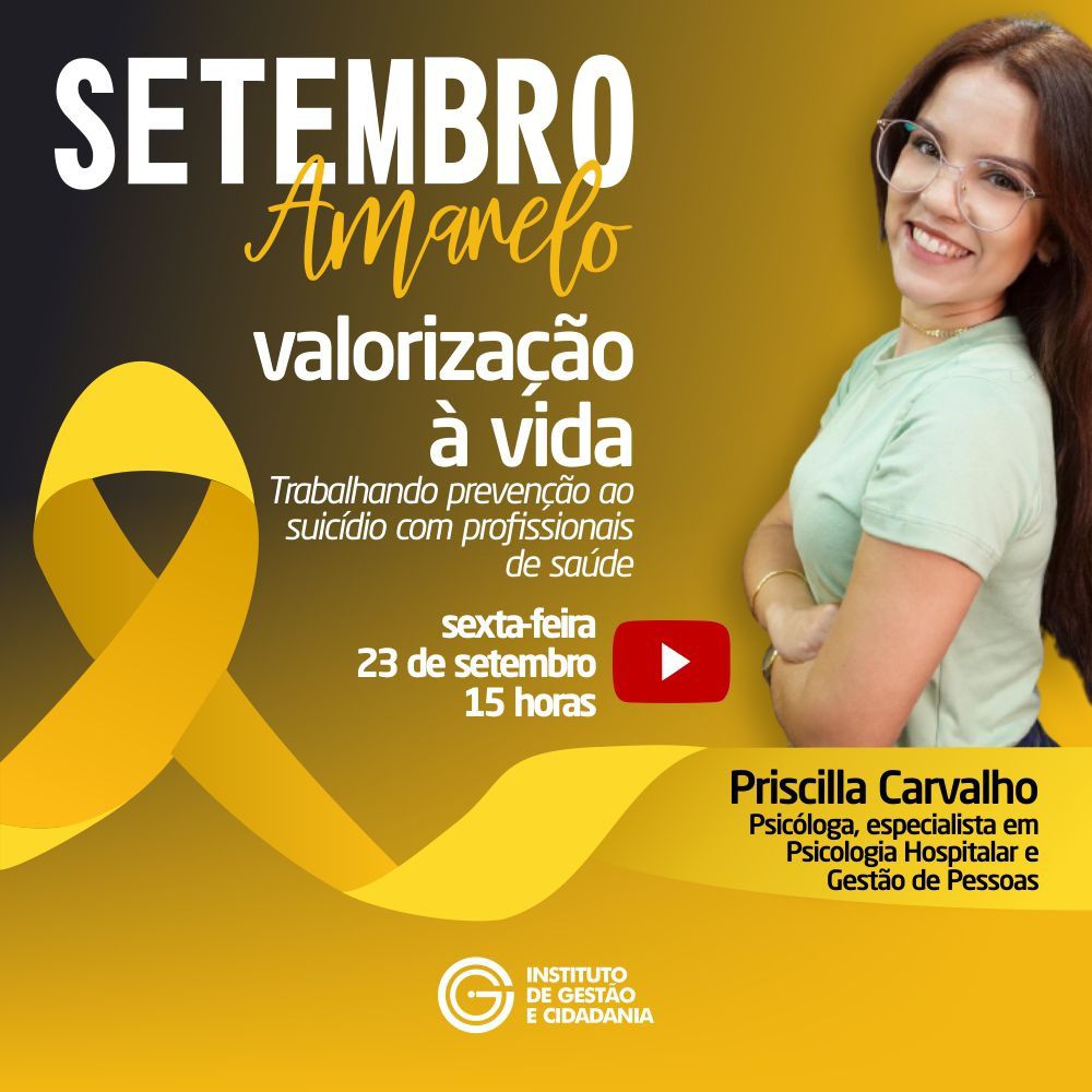 Sistema de Gestão da Qualidade Treinamentos Setembro Amarelo – Valorização à Vida Autor: Priscilla CarvalhoData: 23/09/2022 Priscilla Carvalho Psicóloga, especialista em Psicologia Hospitalar e Gestão